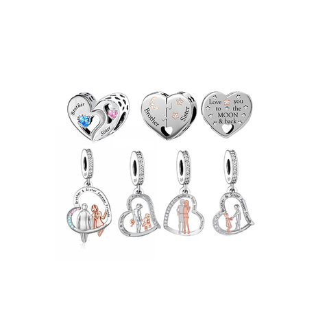 Fit braccialetto con ciondoli di marca originale 925 Sterling Silver Love Heart Sister nonna zia figlia perline per la creazione di gioielli da donna