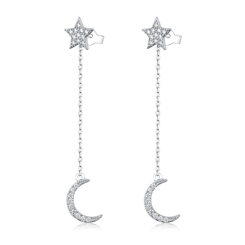 925 стерлингового серебра с изображением луны и звезд, звено цепи проложить кубический циркон серьги-гвоздики в форме малыша Mujer женские Brinco уха Pendientes