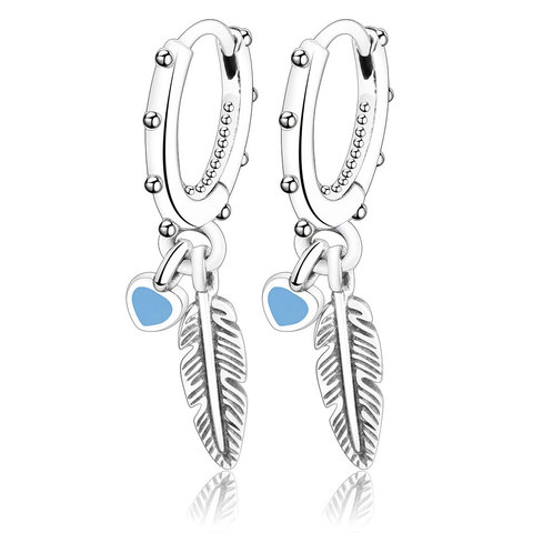 2020 модные серьги-гвоздики из стерлингового серебра 925 пробы в богемном стиле с перьями и синими эмалью в форме сердца