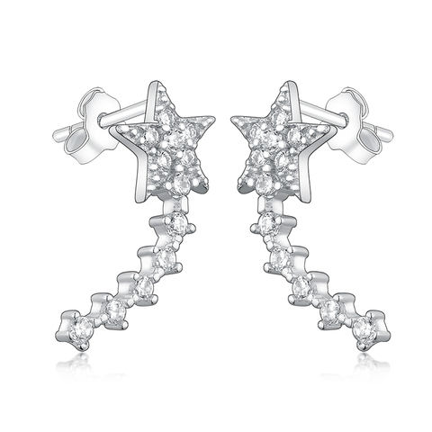 925 стерлингового серебра Метеор хвост Изысканная линия светящийся прозрачный CZ серьги-гвоздики для женщин подлинные серебряные ювелирные изделия
